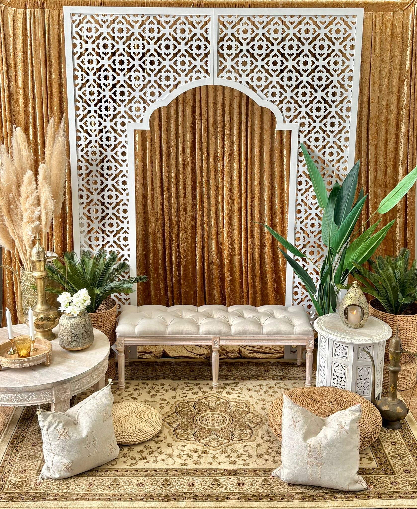 These items can be spread to cover more space, or additional rugs, cushions, and other decor can be added if you would like to make this package larger.
