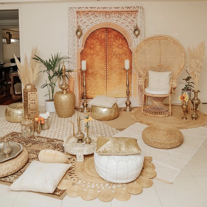 These items can be spread to cover more space, or additional rugs, cushions, and other decor can be added if you would like to make this package larger.